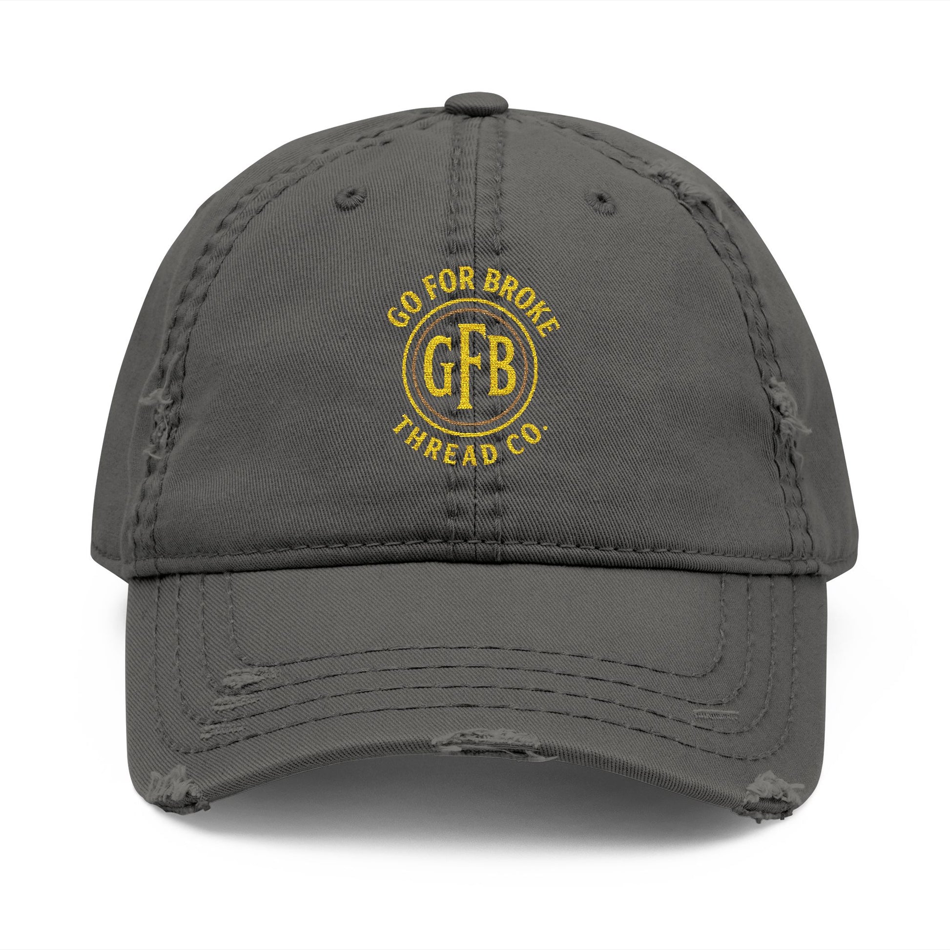 Distressed Embroidered Dad Hat — "Go For Broke" Yellow Logo
